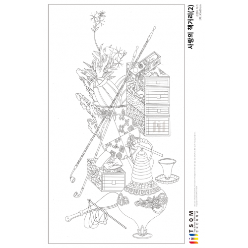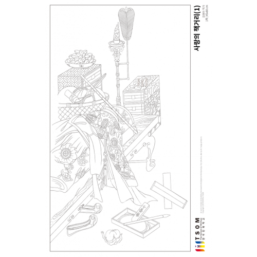 기메동양박물관 소장의 책거리 작품을 화사한 색감과 현대 민화적 시각으로 재해석해 볼 수 있습니다.