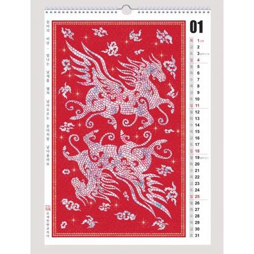 전통의 상징성과 현대적인 감각을 담은 오색찬란코리아의 2026 아트 벽걸이 달력입니다.